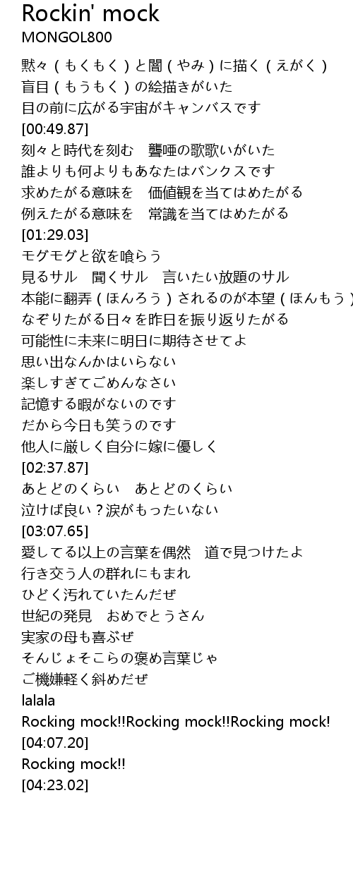 | [04:01.85] | Rocking mock!!Rocking mock!!Rocking mock! |