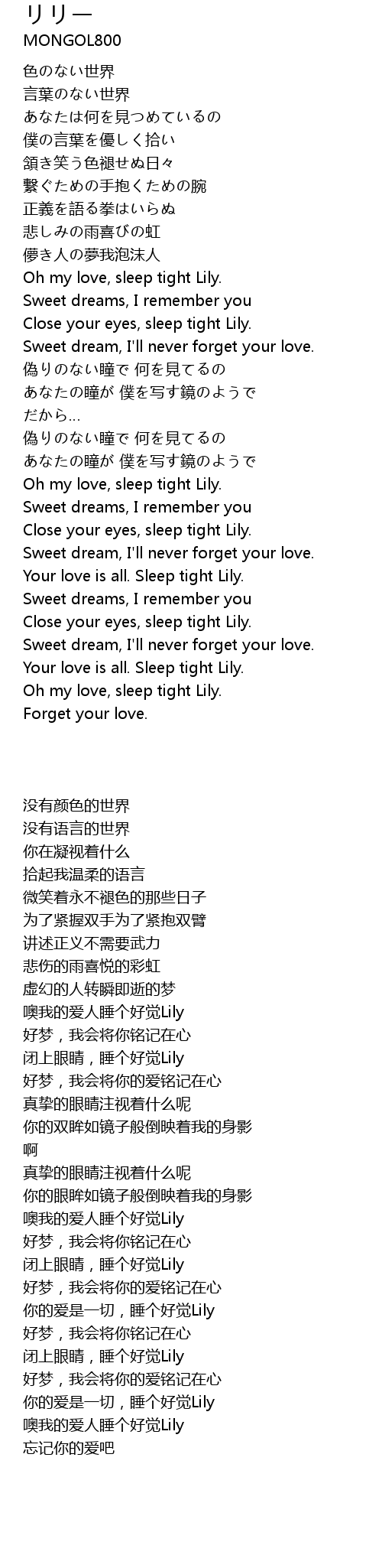 | [02:22.33] | Your love is all. Sleep tight Lily. |