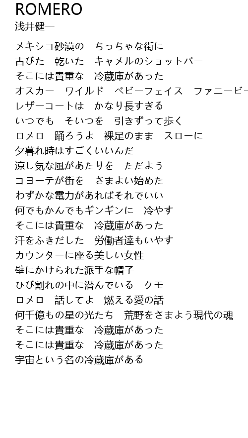 | [02:58.86] | ロメロ 話してよ 燃える愛の話 |