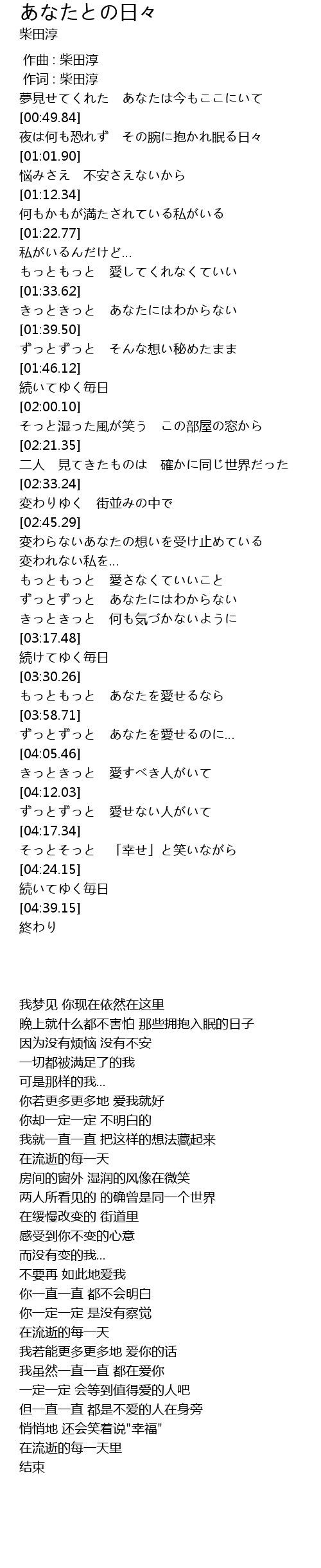 | [00:01.00] | 作词 : 柴田淳 |