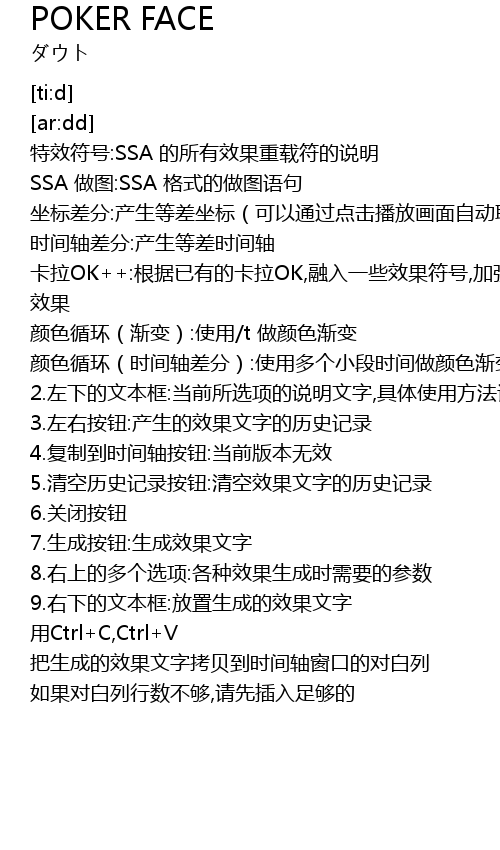 | [00:04.933] | 特效符号:SSA 的所有效果重载符的说明 |