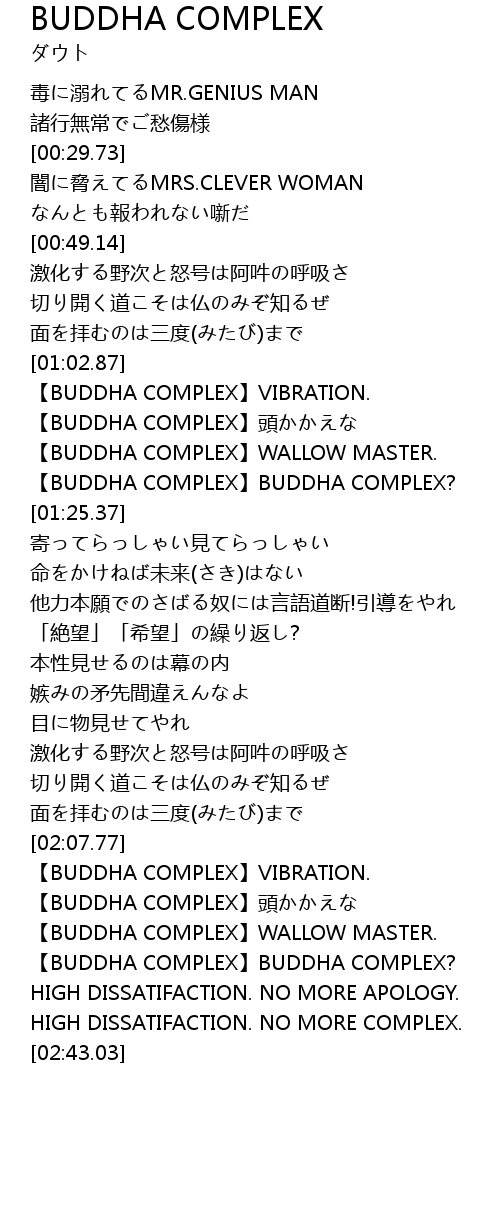 | [02:17.66] | 【BUDDHA COMPLEX】頭かかえな |