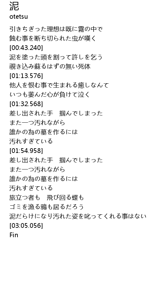 | [02:51.937] | 泥だらけになり汚れた姿を叱ってくれる事はない |