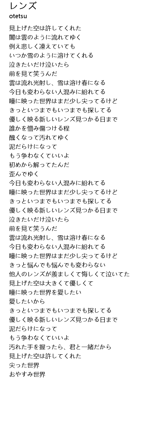| [03:55.43] | 他人のレンズが羨ましくて悔しくて泣いてた |