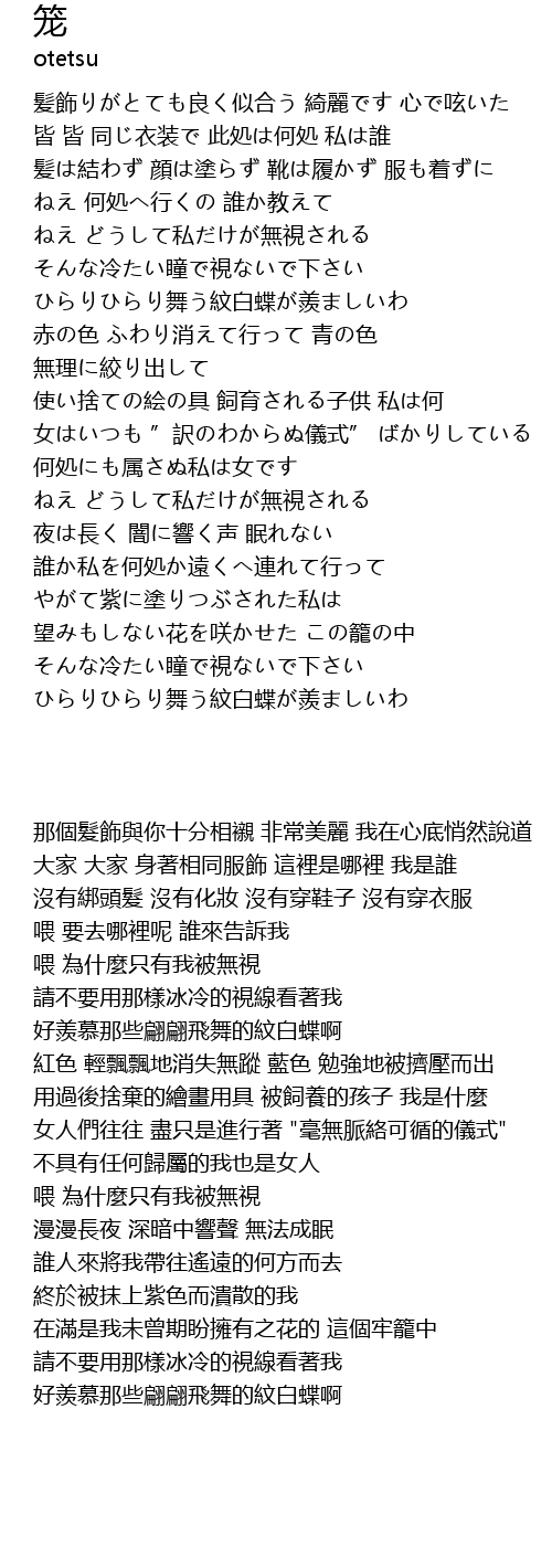 | [02:53.64] | ひらりひらり舞う紋白蝶が羨ましいわ |
