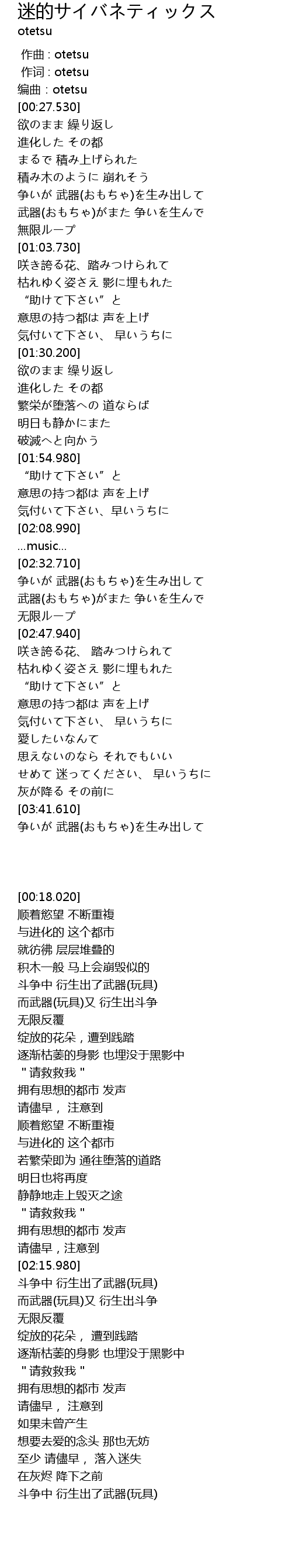 | [00:00.00] | 作曲 : otetsu |