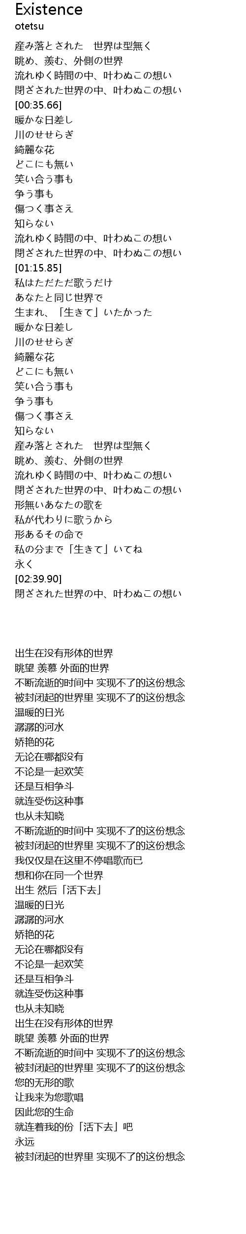 | [01:38.49] | あなたと同じ世界で |