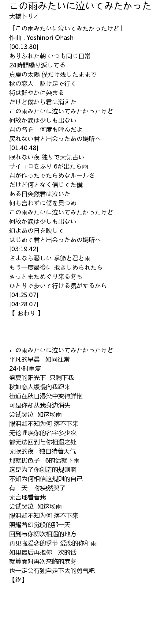「この雨みたいに泣いてみたかったけど」 |