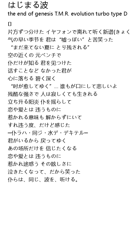 | 歌手 | the end of genesis T.M.R. evolution turbo type D |