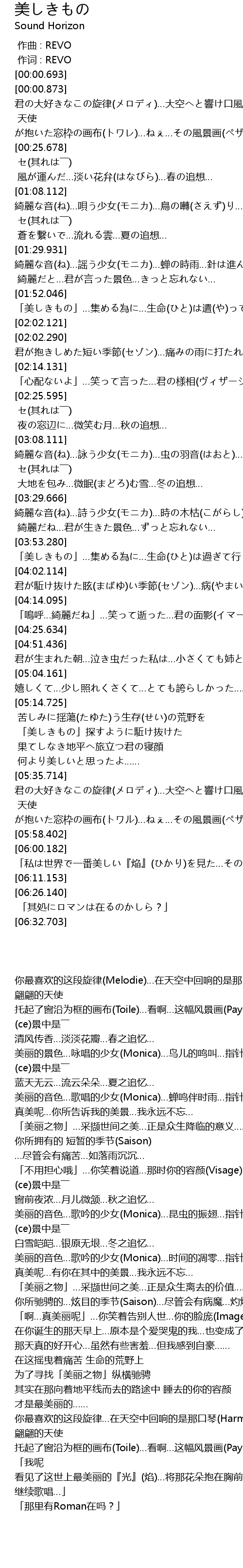 | [03:53.280] | 「美丽之物」…采撷世间之美…正是众生离去的价值…… |