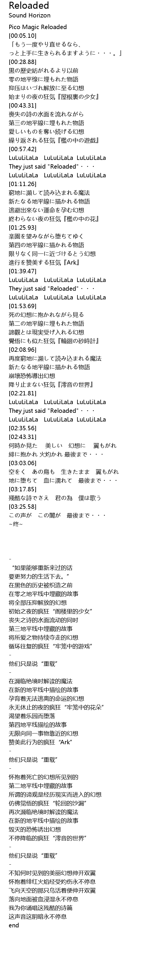 | [02:19.17] | 降り止まない狂気『澪音の世界』 |