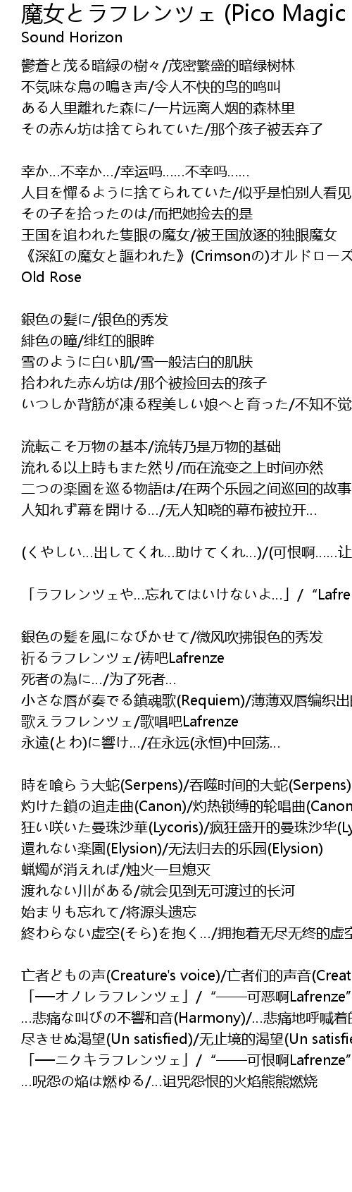 | 歌曲 | 魔女とラフレンツェ (Pico Magic ver.) |