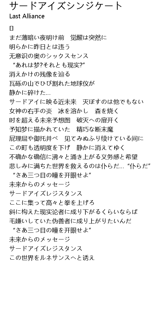 | 歌手 | Last Alliance |