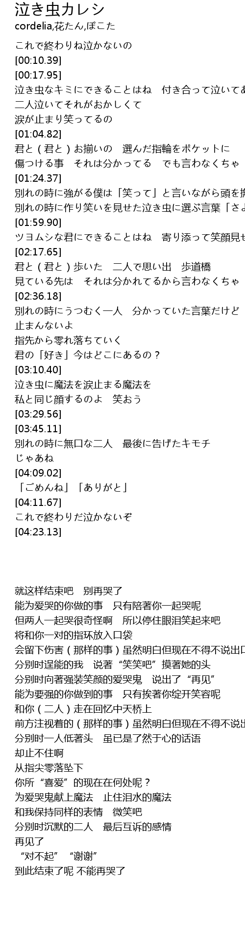 | [04:15.56] | 到此结束了呢 不能再哭了 |