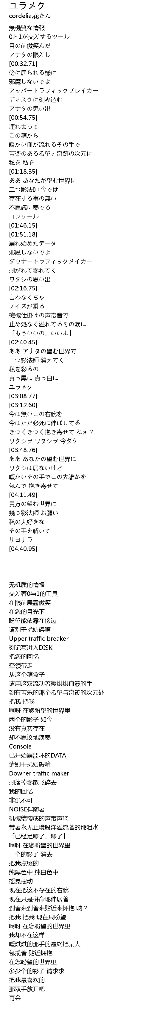 | [01:07.75] | 苦楽のある希望と奇跡の次元に |