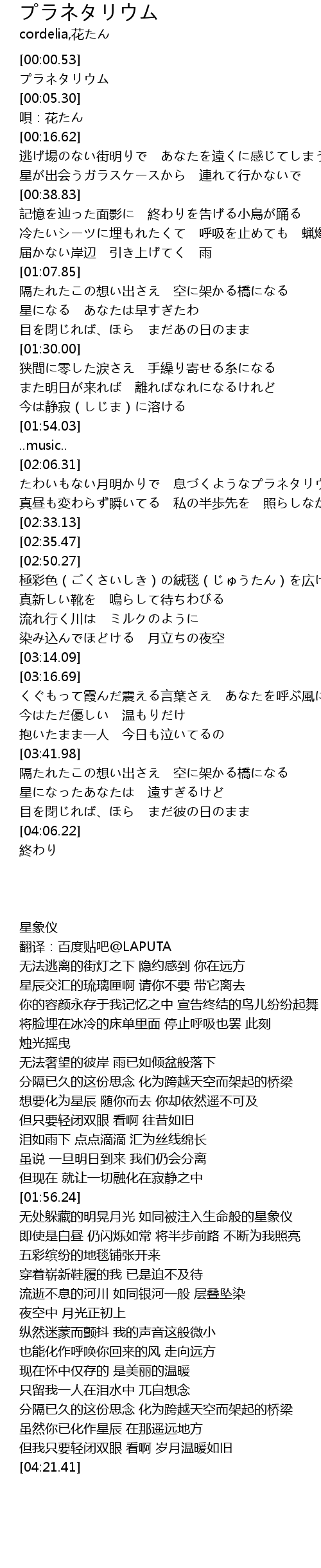 | [00:01.77] | プラネタリウム |