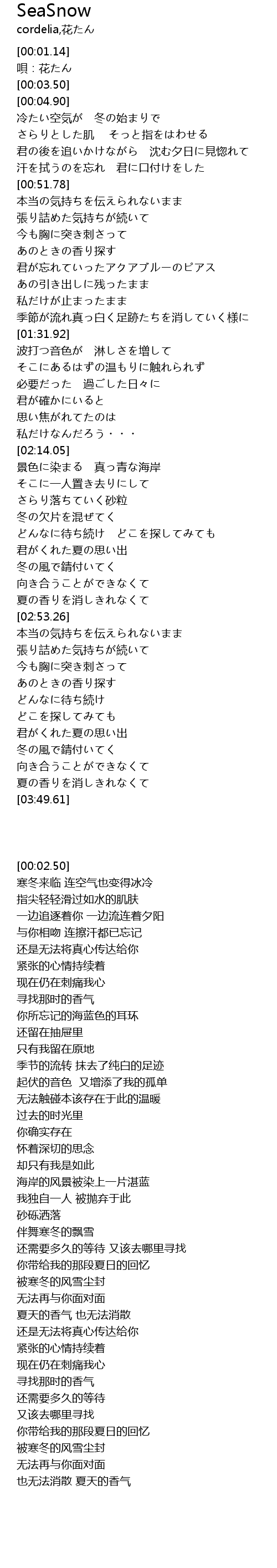 | [01:42.05] | 波打つ音色が 淋しさを増して |