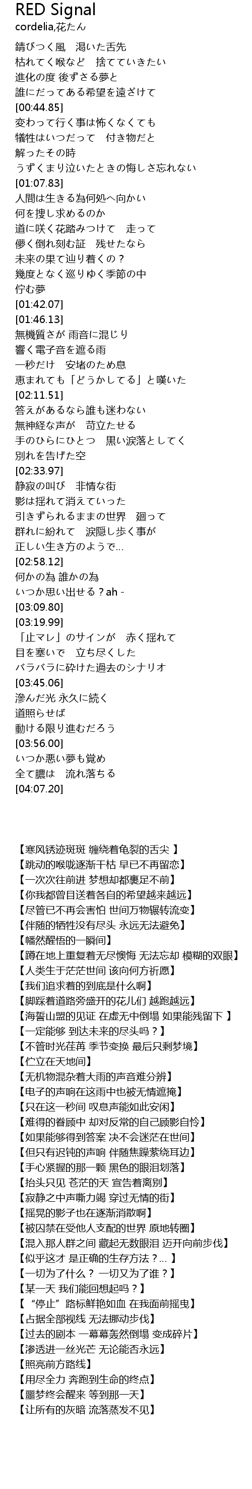 | [03:33.45] | 「止マレ」のサインが 赤く揺れて |