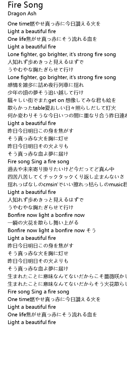 | Lone fighter, go brighter, it's strong fire song | |