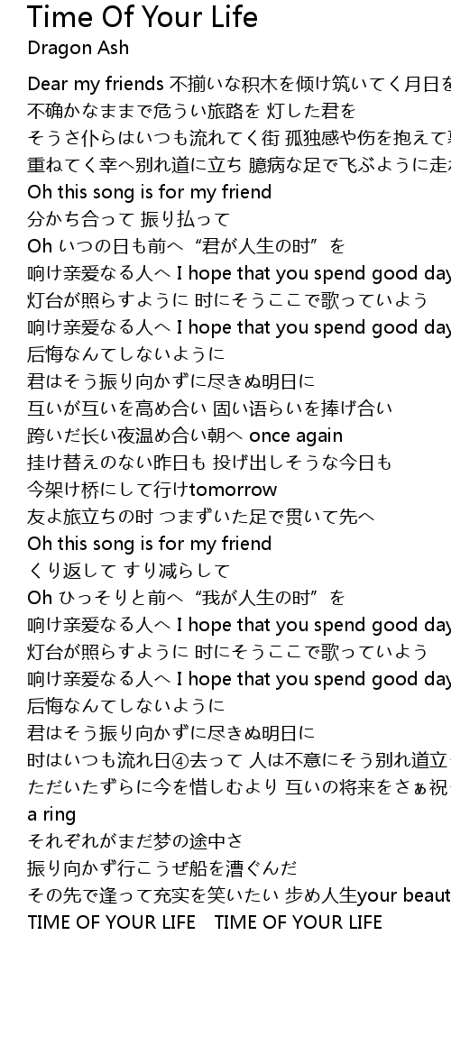 | 歌曲 | Time Of Your Life |
