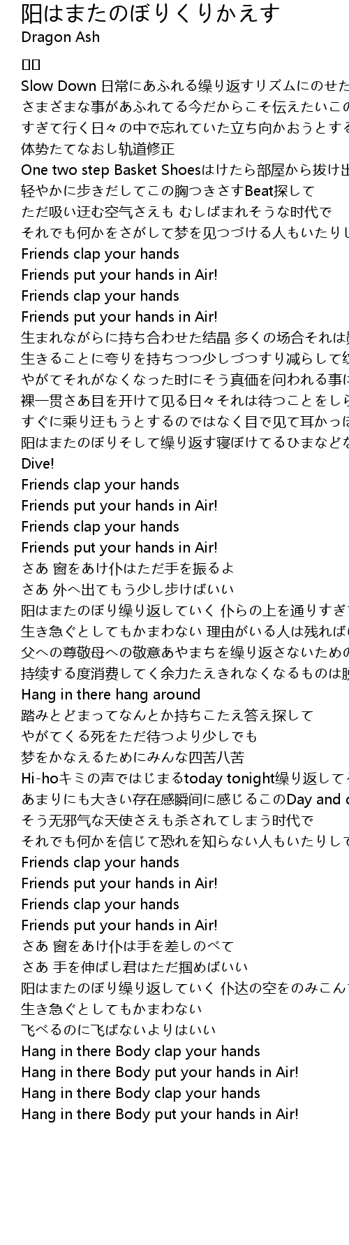 | 阳はまたのぼりそして缲り返す寝ぼけてるひまなどない今だ Dive! | |