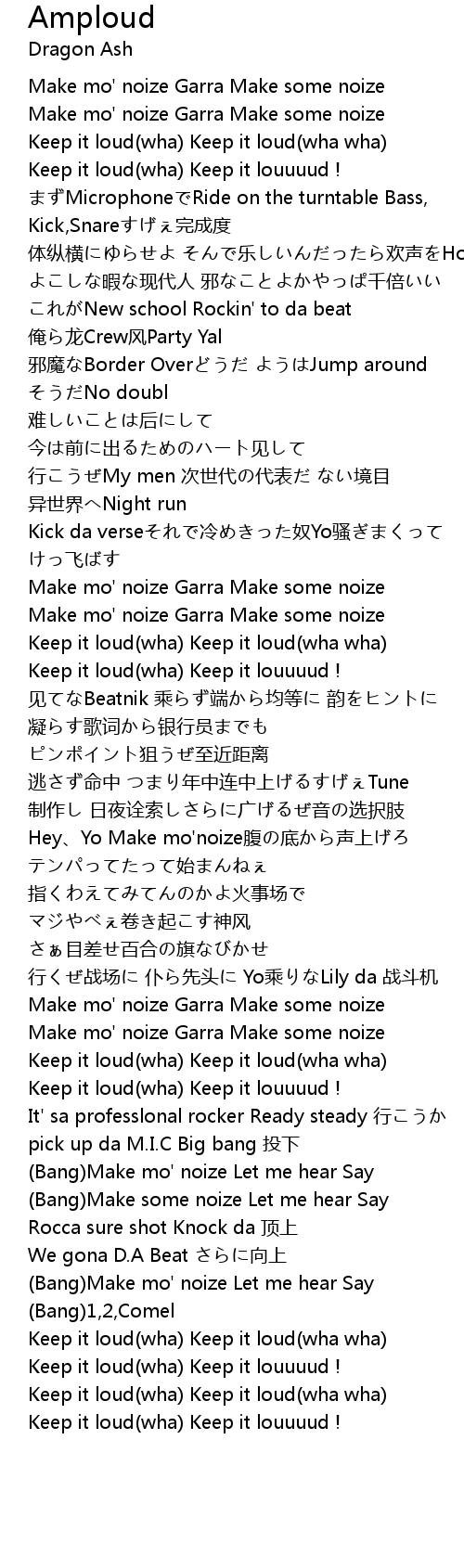 | Keep it loud(wha) Keep it loud(wha wha) | |
