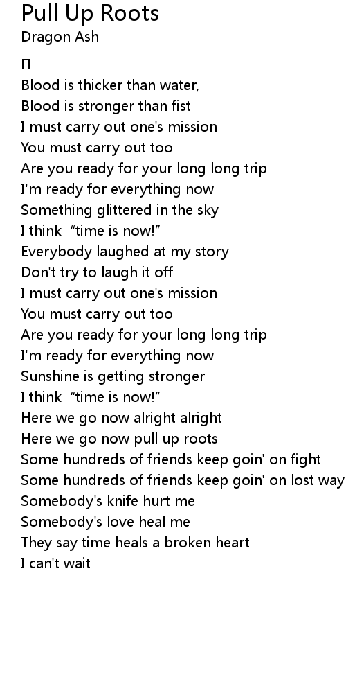 | Here we go now pull up roots | |