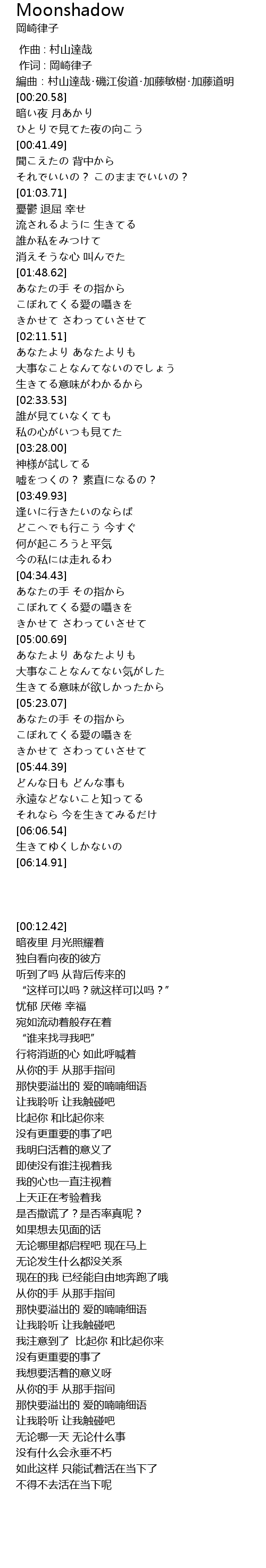 | [00:01.00] | 作词 : 岡崎律子 |