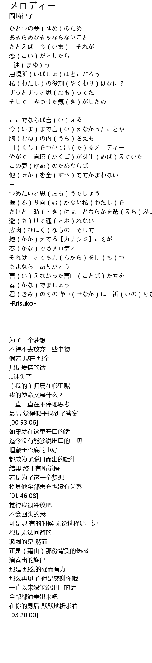 | [01:22.33] | 口(くち)をついて出(で)るメロディー |