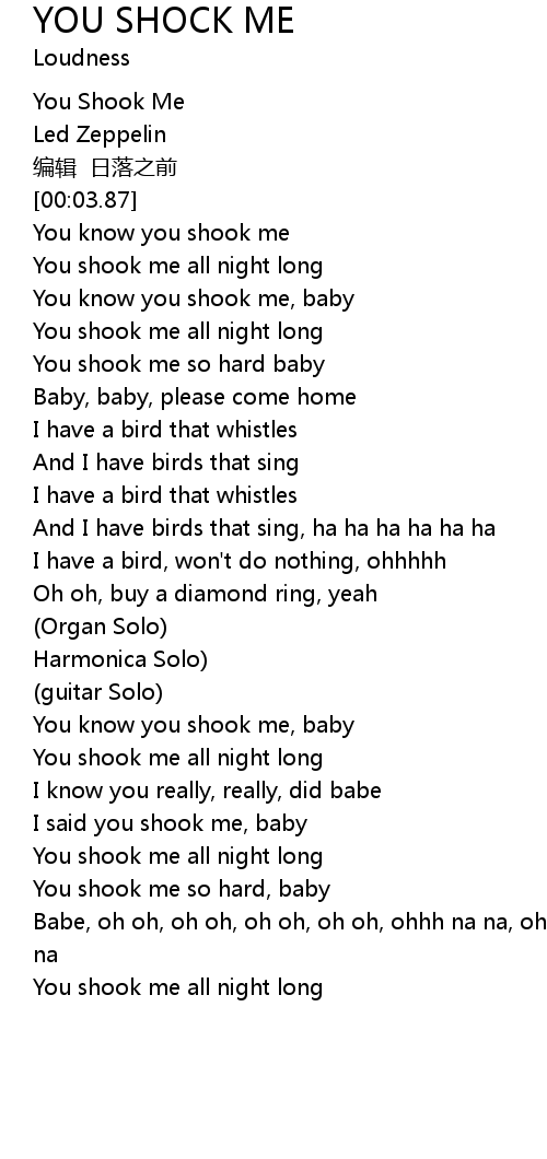 | [00:34.12] | You know you shook me, baby |