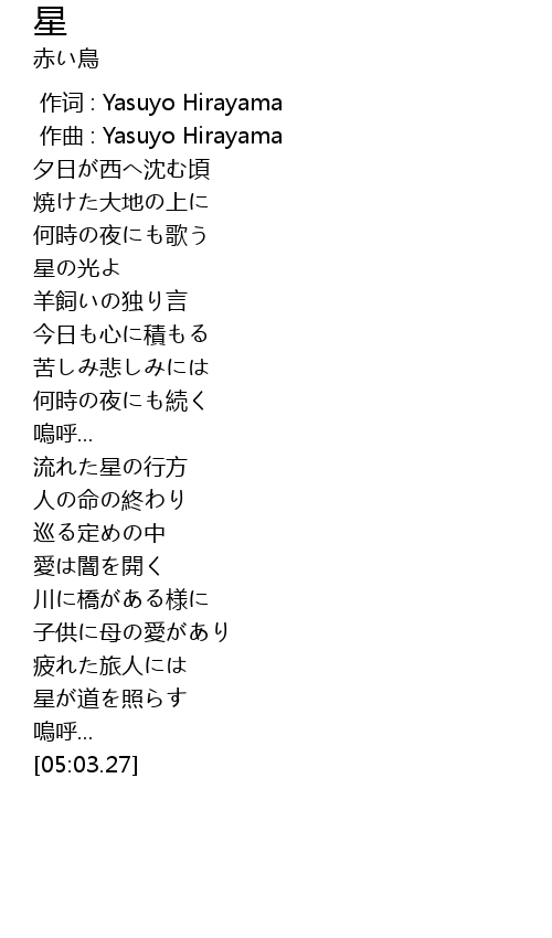 作词 : Yasuyo Hirayama |