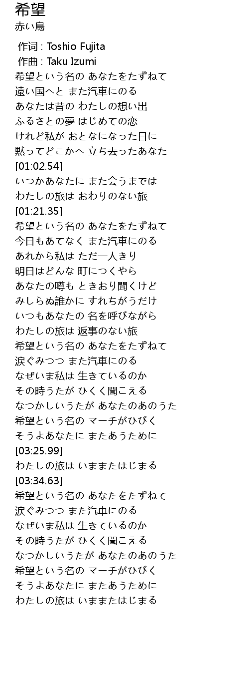 希望という名の あなたをたずねて |