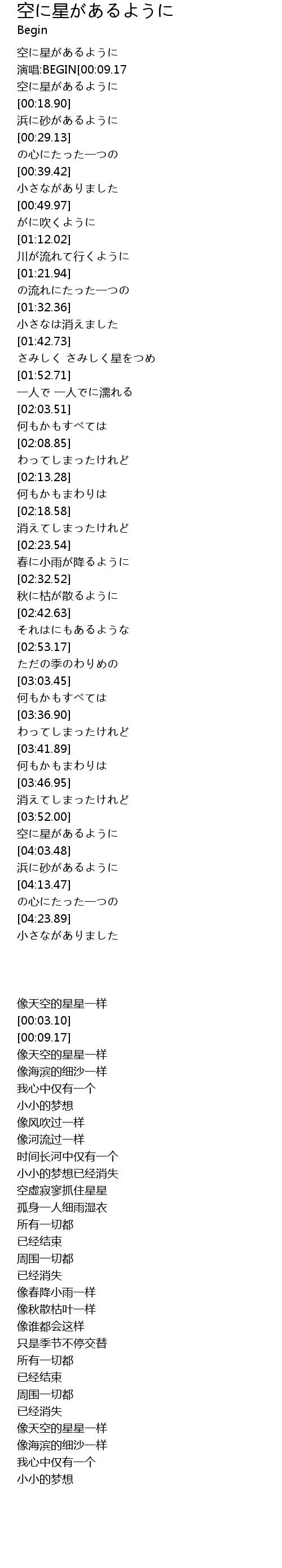 | [00:03.10]演唱:BEGIN[00:09.17] | |