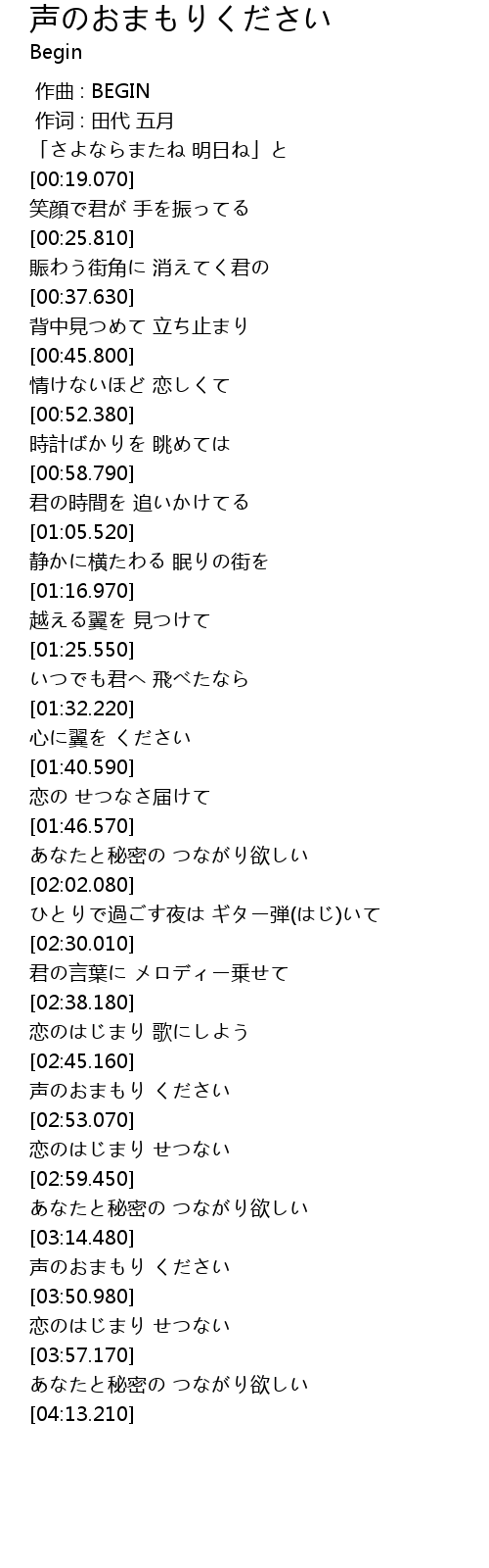 作曲 : BEGIN |
