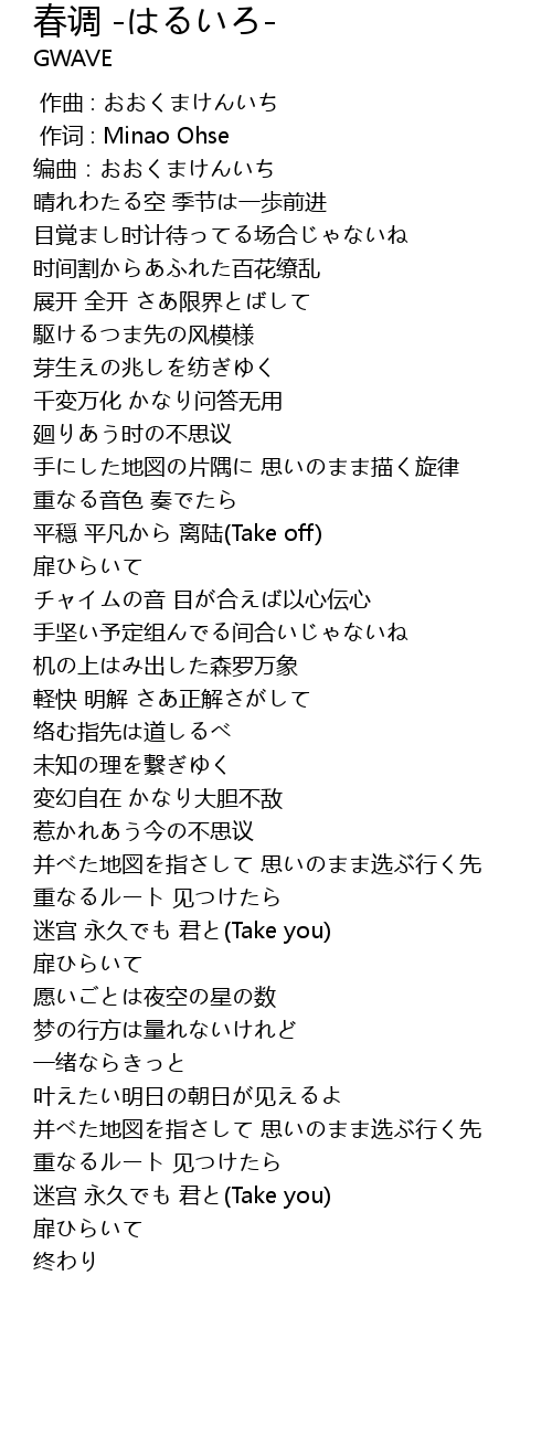 | [00:42.50] | 晴れわたる空 季节は一歩前进 |