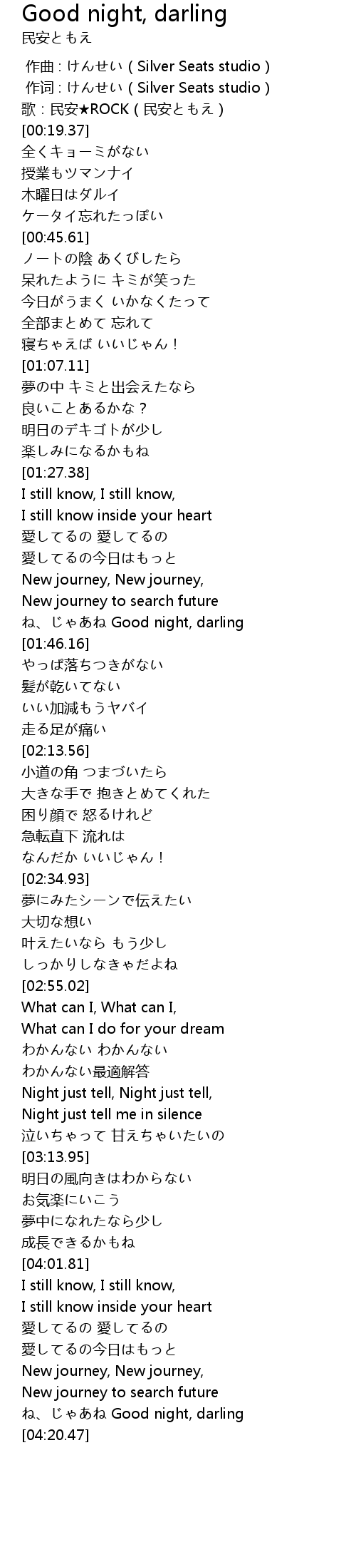 | [01:42.72] | ね、じゃあね Good night, darling |