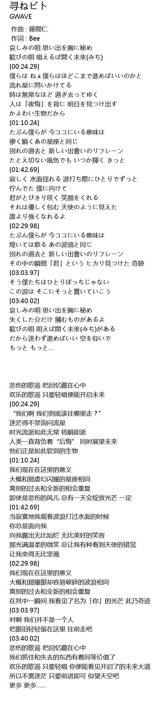 | [01:32.41] | たとえ切ない風色でも いつか輝く きっと |