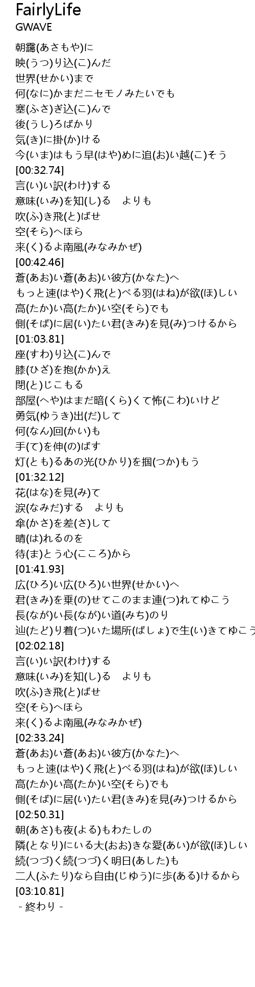 | [02:29.98] | 来(く)るよ南風(みなみかぜ) |