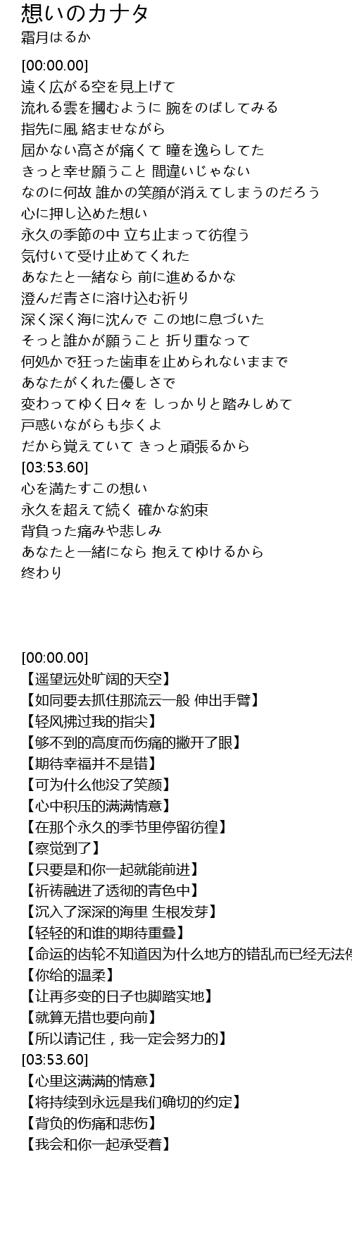 | [02:20.81] | 【祈祷融进了透彻的青色中】 |