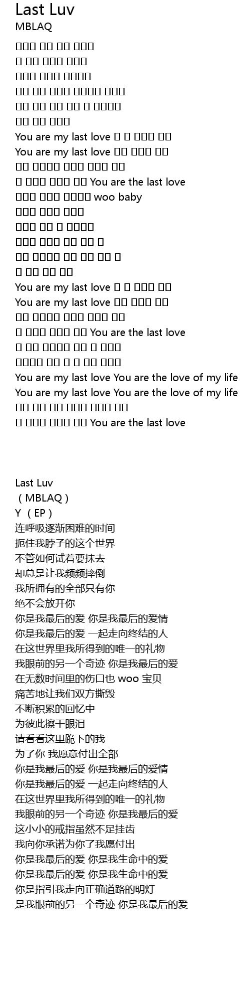 | [00:47.350] | You are my last love 넌 내 마지막 사랑 |