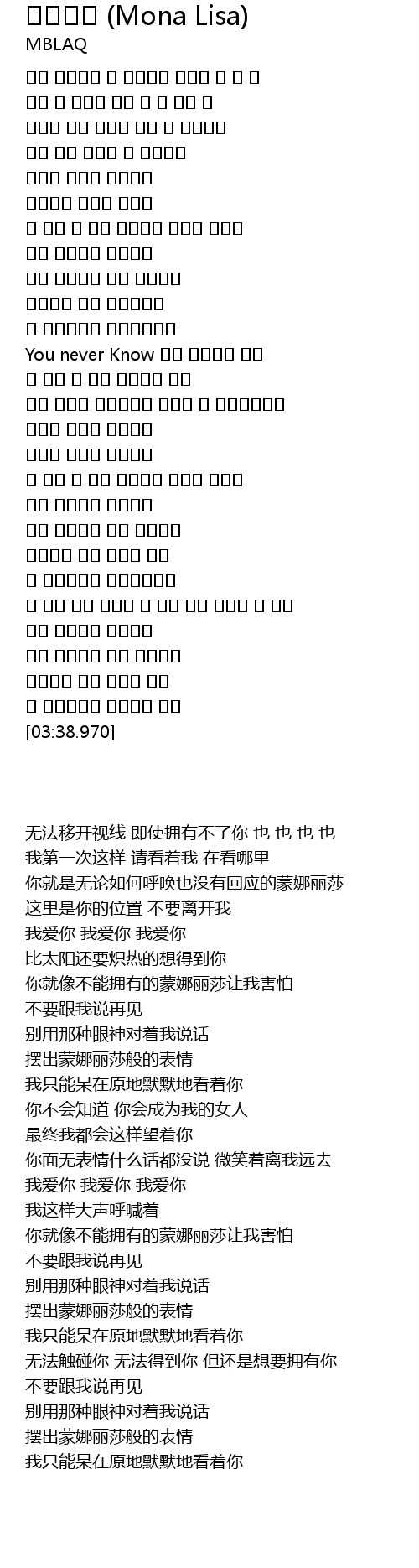 | [00:37.000] | 你就是无论如何呼唤也没有回应的蒙娜丽莎 |