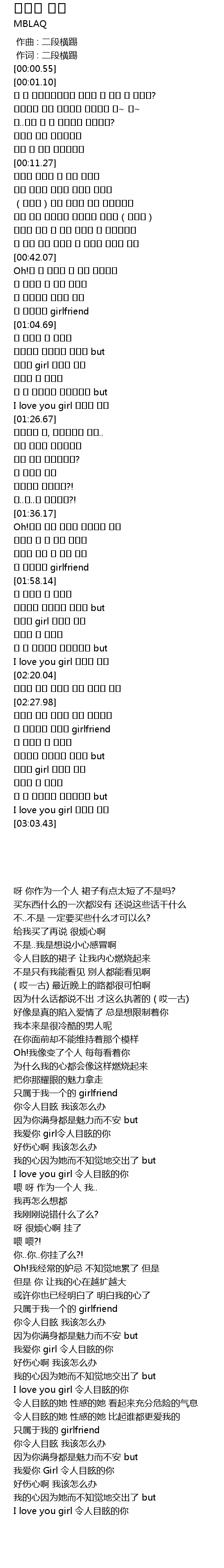 | [02:46.74] | 사랑해 girl 아찔한 너를 |