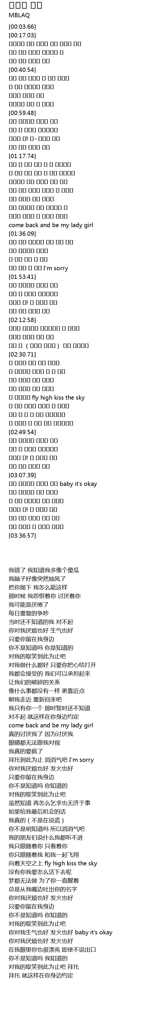 | [03:07.81] | 니가 짜증내고 화내도 좋아 baby it's okay |