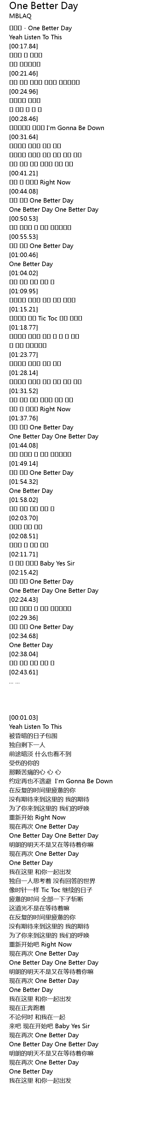 | [01:41.14] | One Better Day One Better Day |