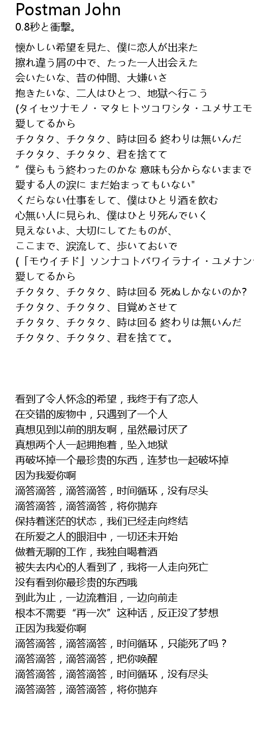 | [02:03.79] | 滴答滴答,滴答滴答,时间循环,只能死了吗? |
