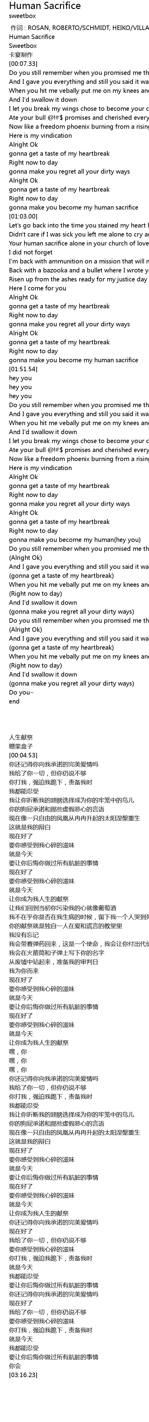 | [01:12.52] | 你的献祭就是独自一人在爱和谎言的教堂里 |