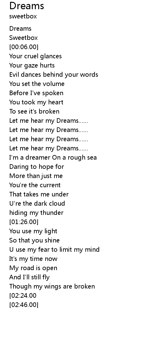 | [00:48.00] | I' m a dreamer On a rough sea |