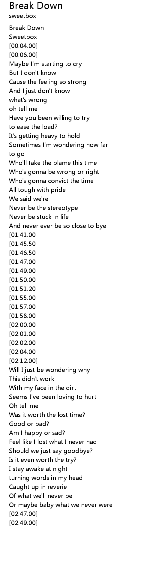 Oh baby, I'm Breaking Down |