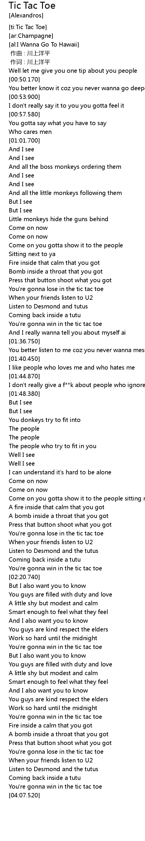 | [04:01.700] | You're gonna win in the tic tac toe |