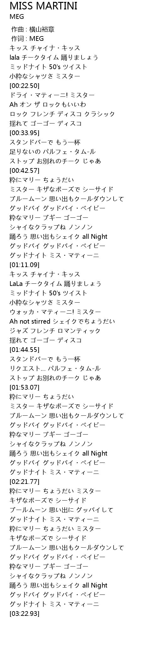 | [02:53.32] | グッドナイト ミス・マティーニ |